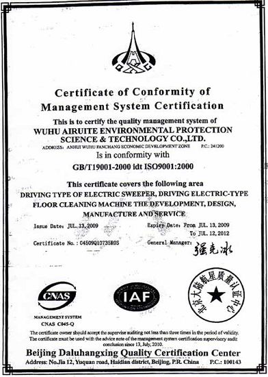順利通過ISO9001:2000質量管理體系認證必將是愛瑞特公司前進道路上跨越的又一臺階。相信在全體員工的努力下,愛瑞特公司不斷學習、吸收國內外先進的管理經驗,一定能為廣大客戶提供更多更高質量的產品與服務。